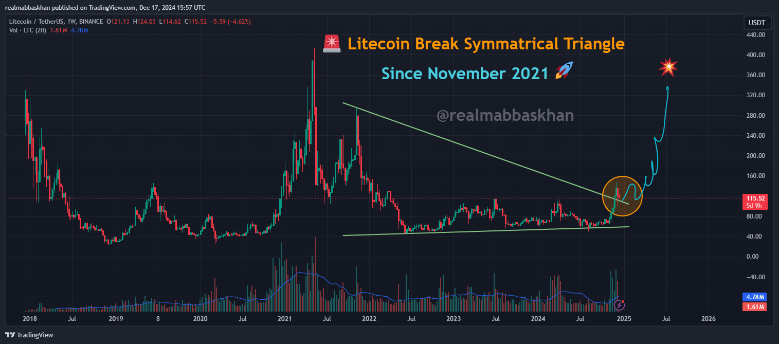 Litecoin (LTC) sta finalmente scoppiando🚨 dopo essere rimasto bloccato nell'accumulo da novembre 2021,🚀🚀 e questa mossa sta iniziando a sembrare seria. Se hai osservato LTC negli ultimi mesi, saprai che ha abbracciato un triangolo simmetrico, e indovina un po'? La rottura è qui.