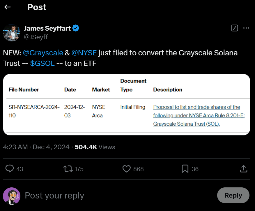 In precedenza, Nate Geraci, Presidente di ETF Store, ha dichiarato che è altamente probabile che gli ETF Solana vengano approvati entro la fine del prossimo anno. Questo indica che il mercato continua a monitorare da vicino gli sviluppi politici della SEC e i potenziali cambiamenti sotto la nuova leadership.