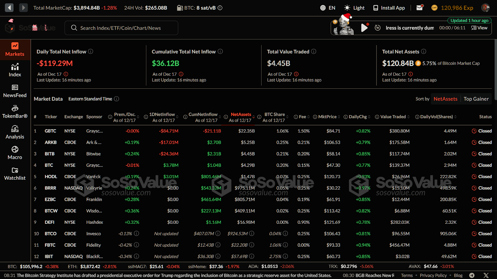 Dalla loro approvazione a gennaio 2024, il Valore Netto degli Asset (NAV) degli ETF spot su Bitcoin ha raggiunto circa 1,373 miliardi di dollari, con afflussi netti totali nei fondi ora a 35,962 miliardi di dollari. La capitalizzazione di mercato ha raggiunto 120 miliardi di dollari, con un totale di asset in gestione di 1.135.284 BTC.