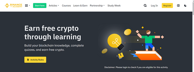 Screenshot della pagina web di Binance Academy