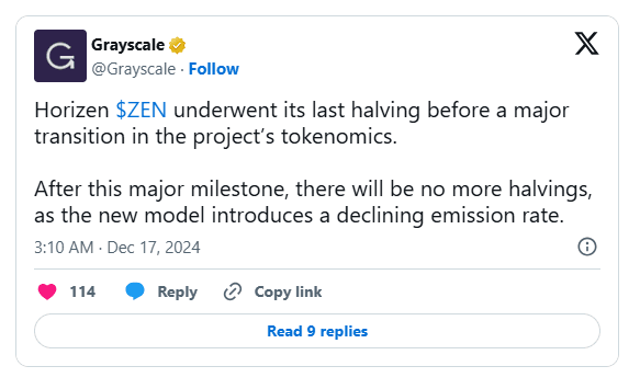 In altri sviluppi, Grayscale ha lanciato Horizen Trust, fornendo agli investitori accreditati l'accesso a ZEN senza dover acquistare o custodire direttamente la criptovaluta. Il servizio è in linea con la crescente domanda di veicoli di investimento crittografici regolamentati.