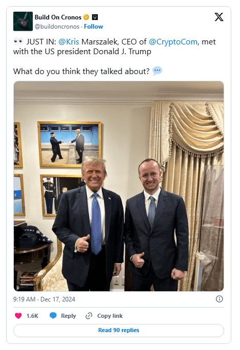 In aggiunta alle modifiche normative, il CEO di CryptoCom Kris Marszalek ha recentemente incontrato Trump per discutere le future politiche sulle criptovalute. La società ha inoltre annunciato il ritiro della causa contro la SEC, segnalando la sua capacità di risolvere gli ostacoli normativi. Questi sviluppi suggeriscono che l’amministrazione entrante potrebbe dare priorità alla creazione di un ambiente favorevole per le attività legate alle criptovalute.