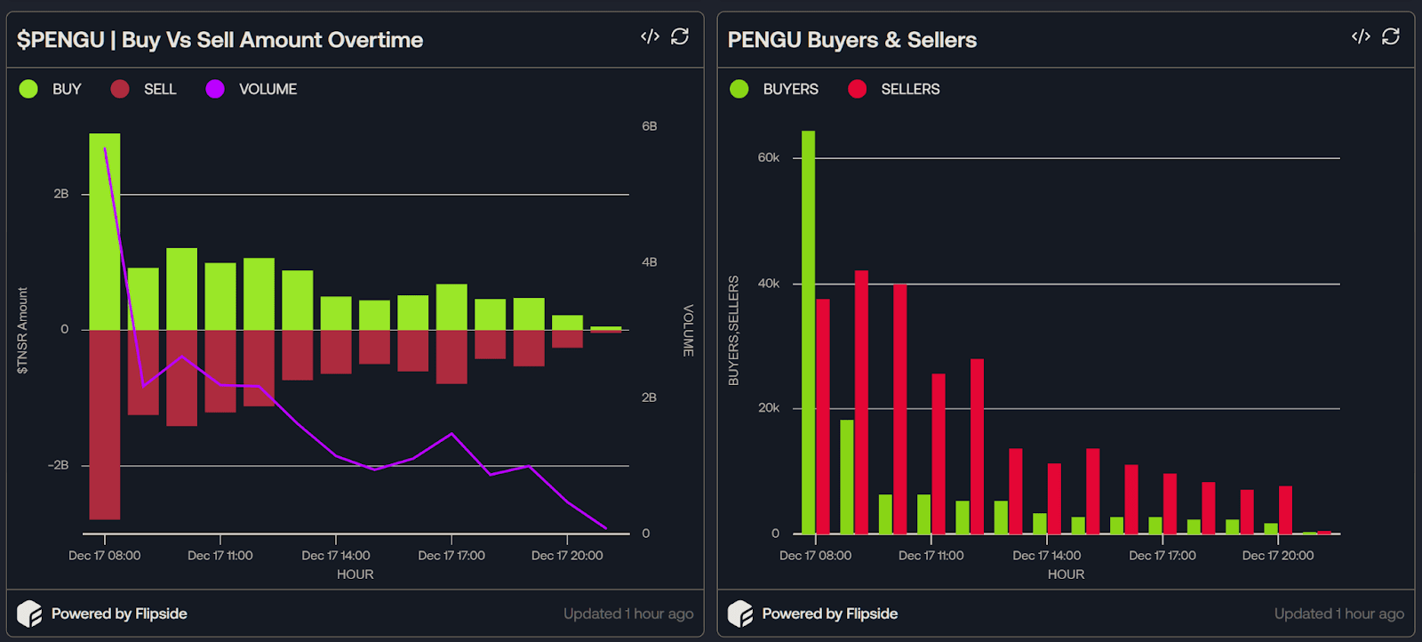 Oltre 2 miliardi di PENGU sono stati venduti all'ora.
