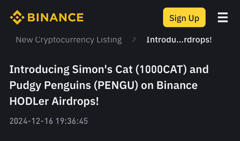 šø Binance elencherĆ PENGU il 2024-12-17 14:00 (UTC) e aprirĆ il trading contro USDT, BNB, FDUSD e coppie TRY. Il tag seed sarĆ applicato a PENGU.