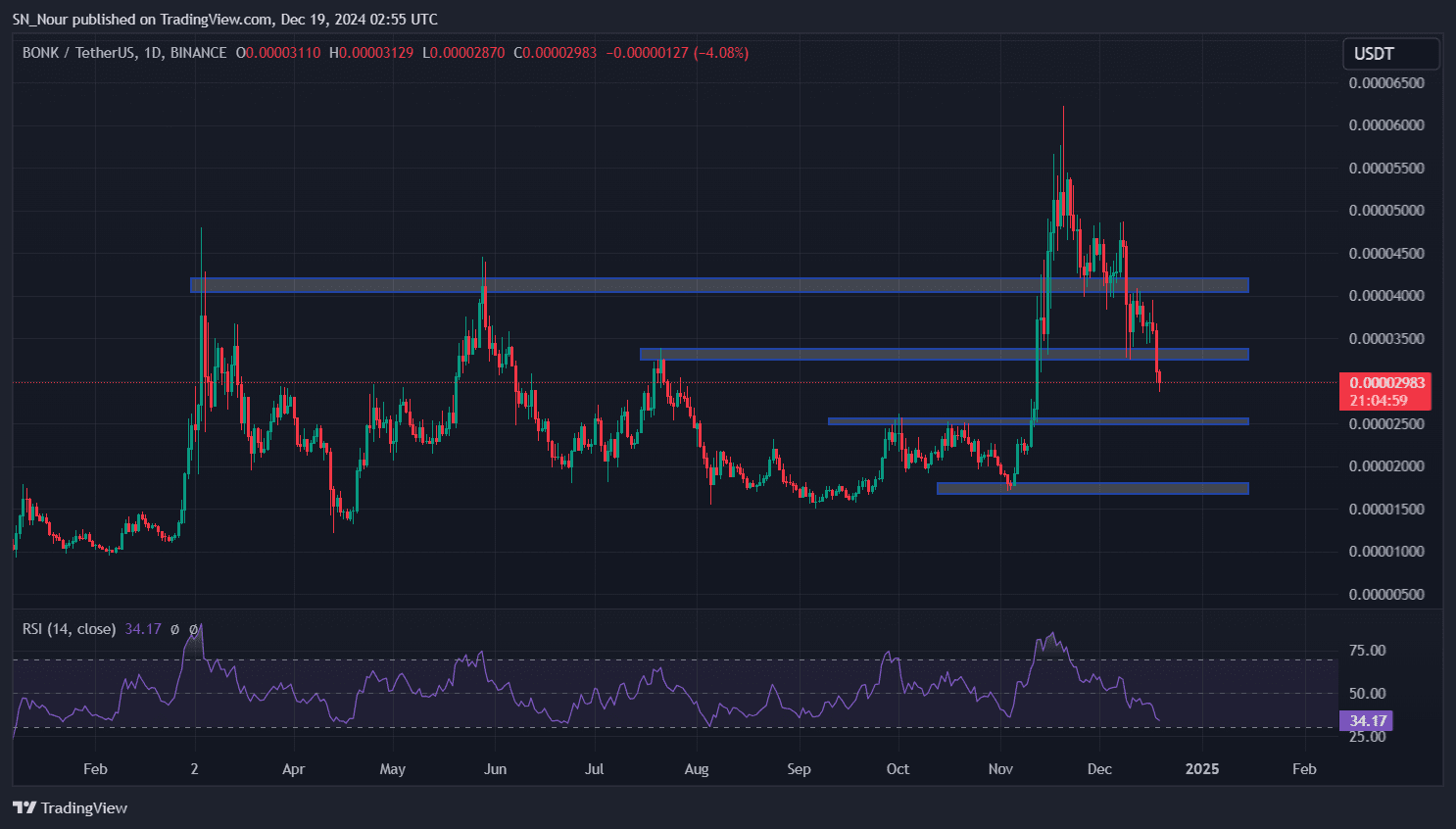 Questo calo potrebbe anche essere correlato al generale indebolimento della “stagione delle altcoin”, che ha influenzato i prezzi di molte altre monete meme. Se la situazione del mercato non migliora, BONK potrebbe avere difficoltà a recuperare i guadagni perduti.