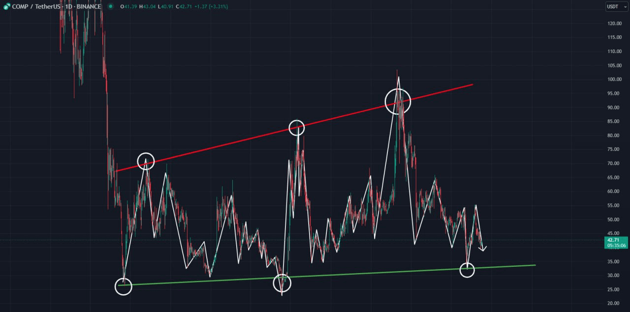 COMP si è mosso al di sotto del suo supporto principale dalla diminuzione avvenuta dal 2020 al 2022. Continua a muoversi in una struttura di mercato laterale al di sotto di questi supporti principali che un tempo lo sostenevano. Ora, sta accumulando forza e potrebbe potenzialmente breakout dopo alcuni test minori e maggiori. Maggiore domanda continuerà a mostrarsi una volta che il riconoscimento da parte di altri trader emergerà all'interno di queste zone. Più questo token sperimenta le sue discese, potrebbe potenzialmente causare un rimbalzo elevato. Al momento, la resistenza principale che è stata creata è ancora a 100. Presto, questa verrà rotta e potrebbe potenzialmente causare un'altra resistenza principale da testare.