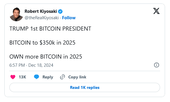 Questa audace previsione di Robert Kiyosaki, autore di Rich Dad Poor Dad, ha attirato l'attenzione, soprattutto alla luce del sostegno dell'ex presidente Donald Trump a Bitcoin. Tuttavia, le prospettive dipendono da fattori chiave, tra cui i livelli di supporto e resistenza, nonché le tendenze del volume degli scambi.