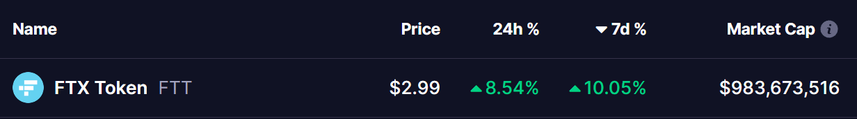 Tuttavia, il Token FTX (FTT) è riuscito a mantenere la sua posizione, sfidando il trend ribassista con un guadagno settimanale del 10%, inclusa l'impennata dell'8% di oggi, e attualmente viene scambiato a livello di $2.99.