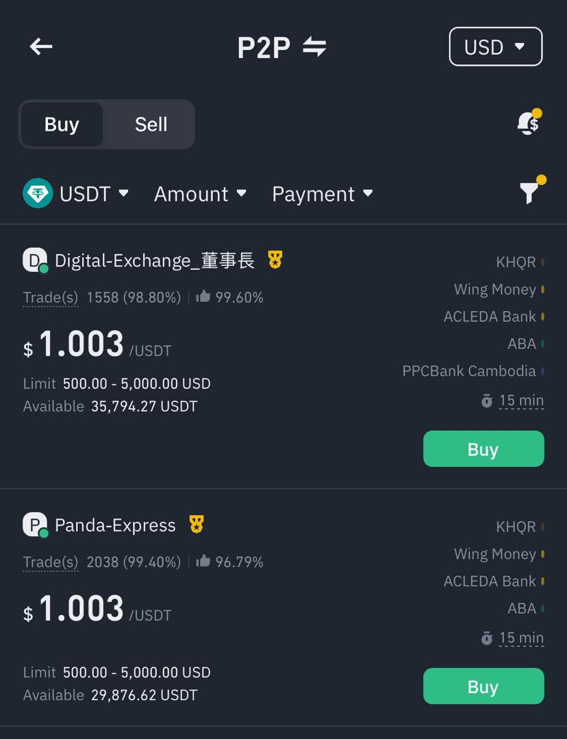 Gli utenti comprano e vendono criptovalute (ad es., Bitcoin, Ethereum, USDT) direttamente con altri utenti.