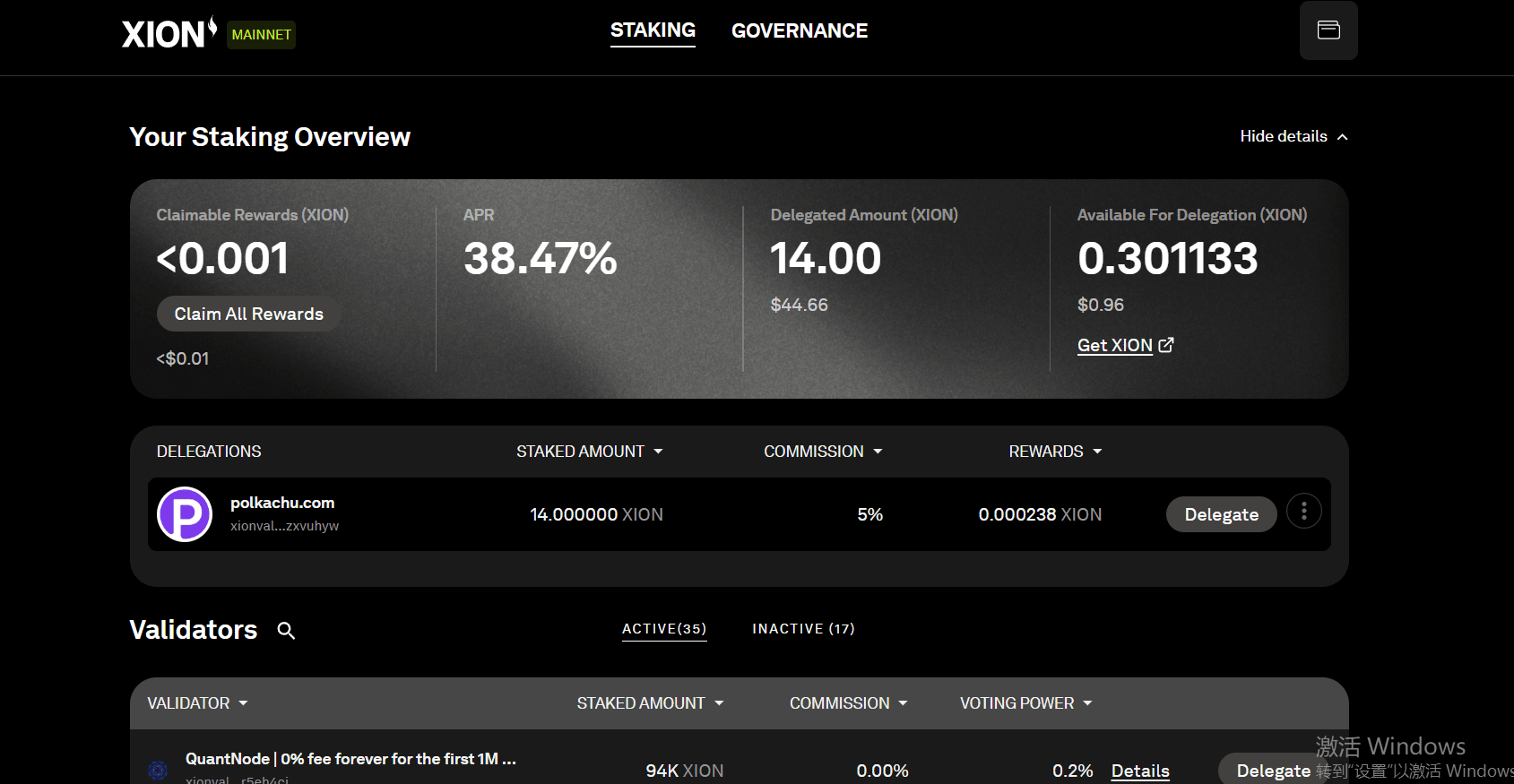 Poi clicca su stake, scegli un clic su Delegate, inserisci la quantità, clicca su delegate now