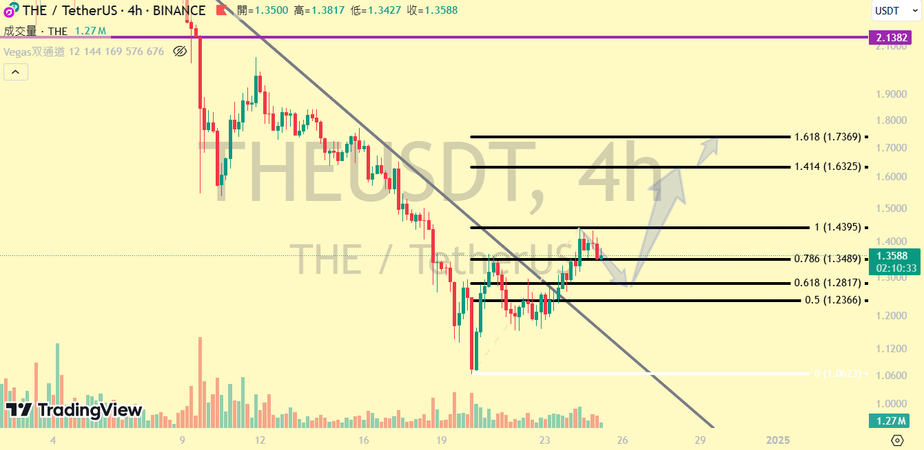 Condivido un punto di ingresso che ho dato ieri nel gruppo a un amico del gruppo $THE , è sceso circa a FIB0.5, qui ho acquistato un po', spero possa salire oltre FIB1.414. Se non riesce a salire, sarà necessario prendere parzialmente profitto.