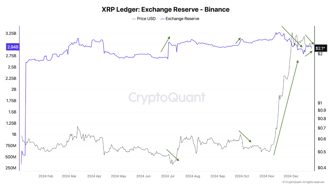 Inoltre, le riserve XRP su Binance, il più grande exchange di criptovalute per volume di scambi, sono in costante aumento da metà dicembre, il che è tipicamente un segnale ribassista poiché spesso precede grandi ondate di aggiustamento.