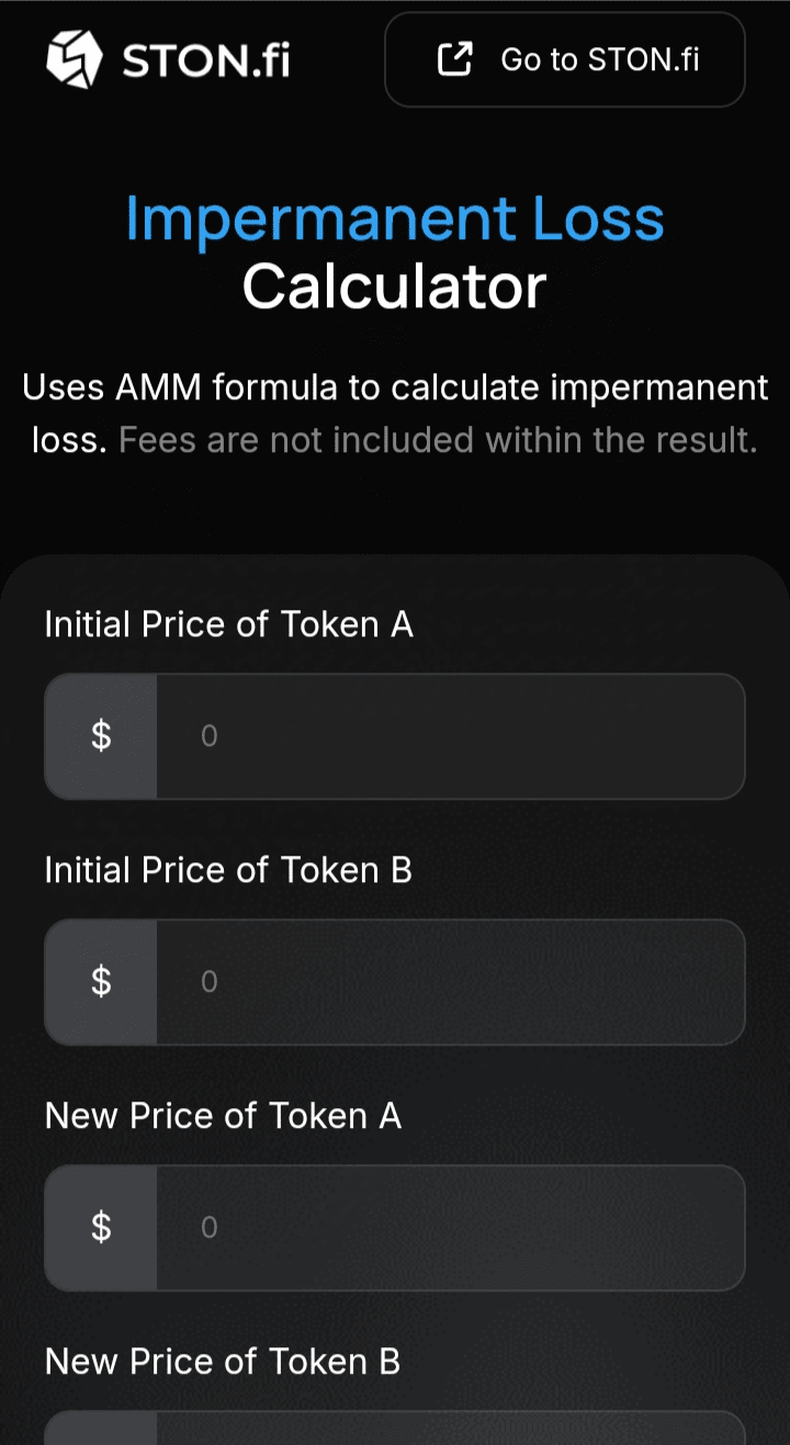 Non temere, STON.fi ha il proprio Calcolatore di Perdita Impermanente che ti aiuta a mitigare la tua perdita.