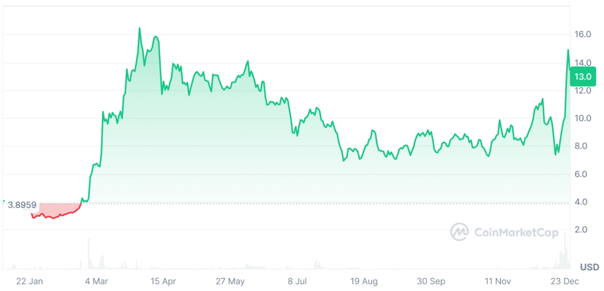 Prospettive tecniche: La moneta ha recentemente invalidato un modello ribassista a doppio massimo, superando la resistenza di 3,31$. Gli analisti si aspettano che il suo slancio rialzista continui, con un obiettivo potenziale di 5$ entro il 2025.