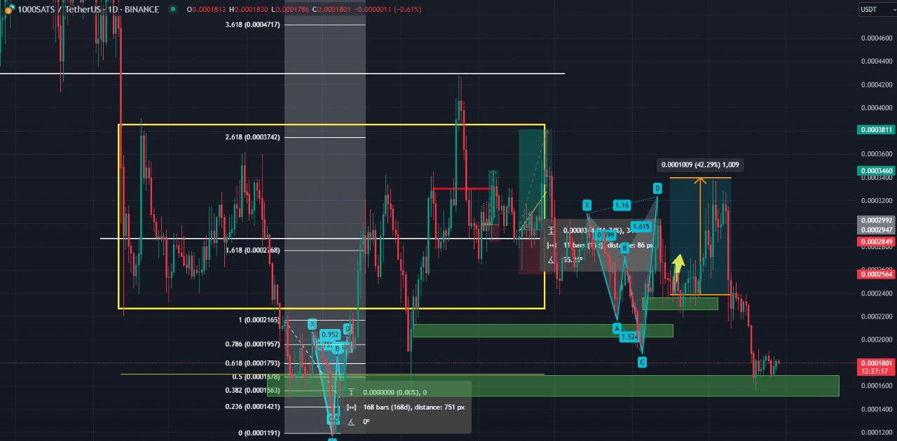 Quando si ingrandisce SATS, si può vedere che si è mosso in un intervallo da aprile di quest'anno con alcune profondità a 0.00022-0.00011. Prendendo in considerazione la struttura di mercato laterale e le profondità create da questo token, possiamo assumere in modo sicuro che si sta preparando per un grande movimento. Questo mercato laterale mostra solo la possibilità di un'accumulazione in corso tenendo conto di un rally. Tenendo presente ciò, abbiamo considerato i 3 possibili scenari che potrebbero verificarsi. Prima di ciò, poiché si è verificata la struttura di mercato laterale, abbiamo già ottenuto un aumento del 15,64% dal suo recente massimo. Pertanto, una volta che si verificherà uno di questi scenari di mercato, saremo pronti a continuare la nostra ricerca di benefici con questo token.