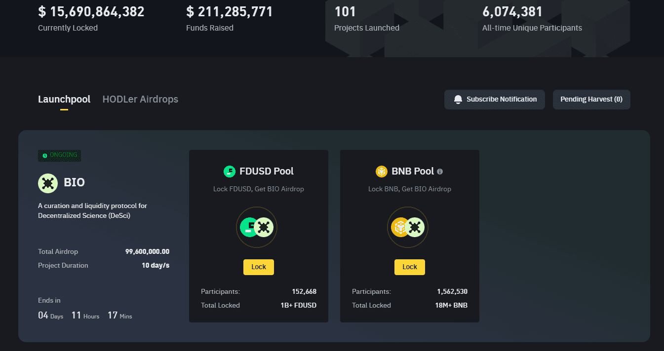 Bio Protocol si unisce al Binance Launchpool: un nuovo progetto DeSci