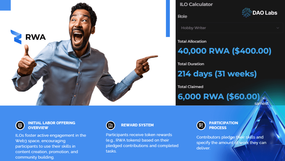 È stata un'opportunità straordinaria per immergersi nel mondo entusiasmante dell'Offerta Iniziale di Lavoro (ILO) di RWA.Inc e come si collega a DaoLabs #SocialMining durante un viaggio di 12 settimane che ha riunito innovazione cripto e creatori di contenuti creativi come mai prima d'ora.