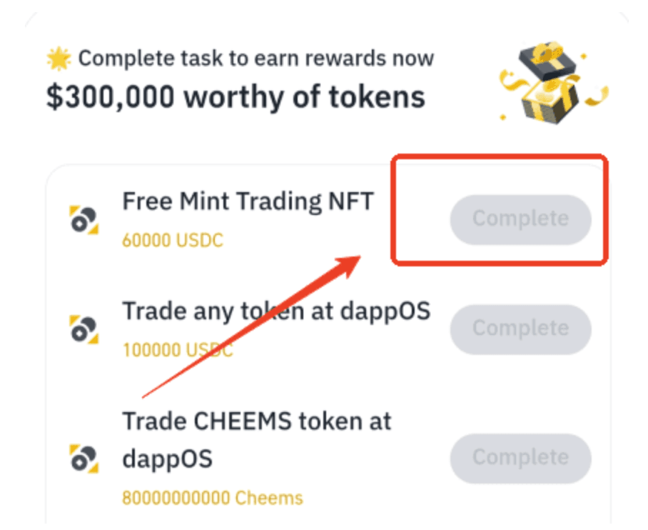 2, OP BNB investi 20U, scambia i token CHEEMS e GOAL e completa 3-4 compiti contemporaneamente.
