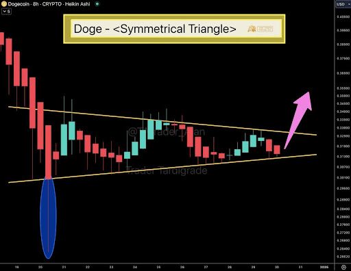Il trader Tardigrade ha evidenziato un triangolo simmetrico che si sta formando sul grafico DOGE, che potrebbe fungere da trampolino per il prossimo rally.