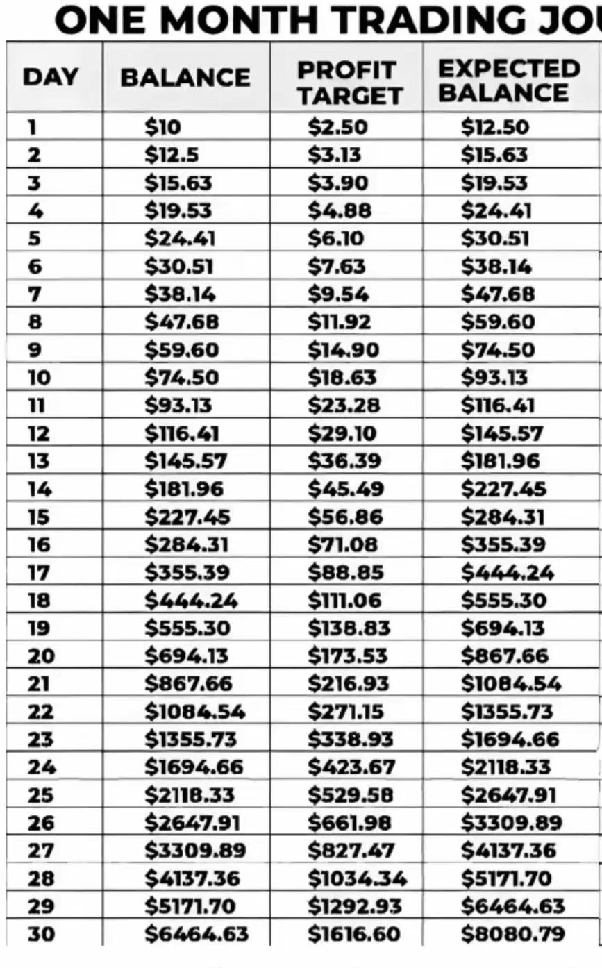 Inizia con $ 10 e guadagna $ 8080 alla fine del mese. È raro e rischioso, ma interessante per un buon trader.