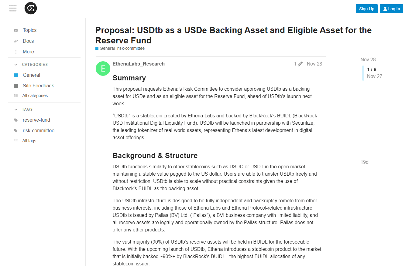 1. Ethena spera di utilizzare USDtb come asset di riserva (asset sostitutivo) per USDe