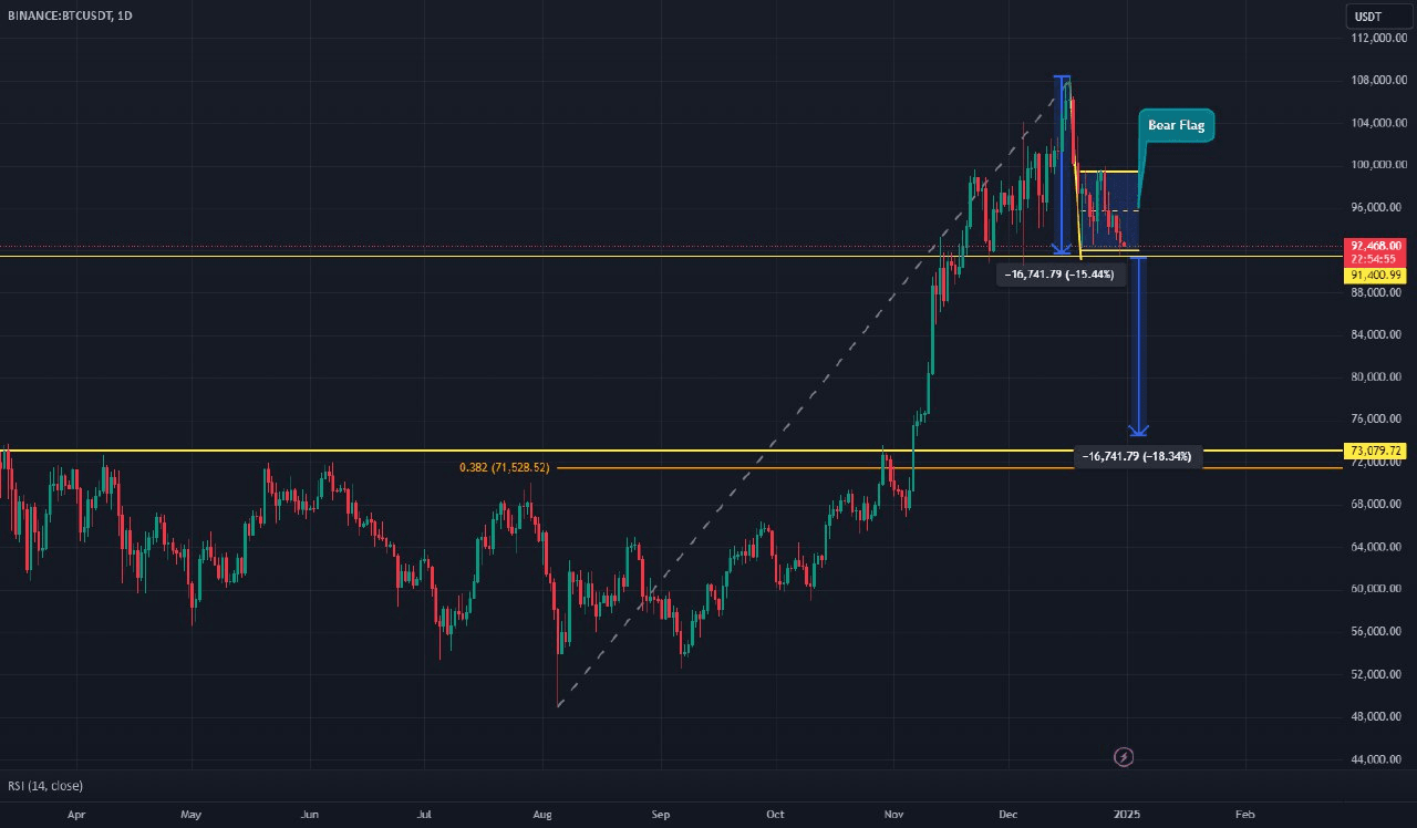 Dopo aver raggiunto massimi storici, BTC sta formando un flag ribassista.