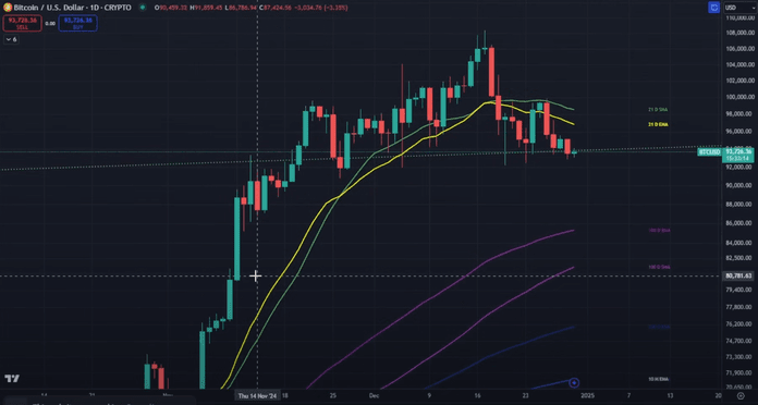 Nel suo ultimo video sul canale DataDash, che ha oltre 510.000 follower, Merten ha affermato che Bitcoin è attualmente intorno ai $94,000, ma i segnali tecnici e gli indicatori macro indicano tutti la possibilità di una correzione brusca.