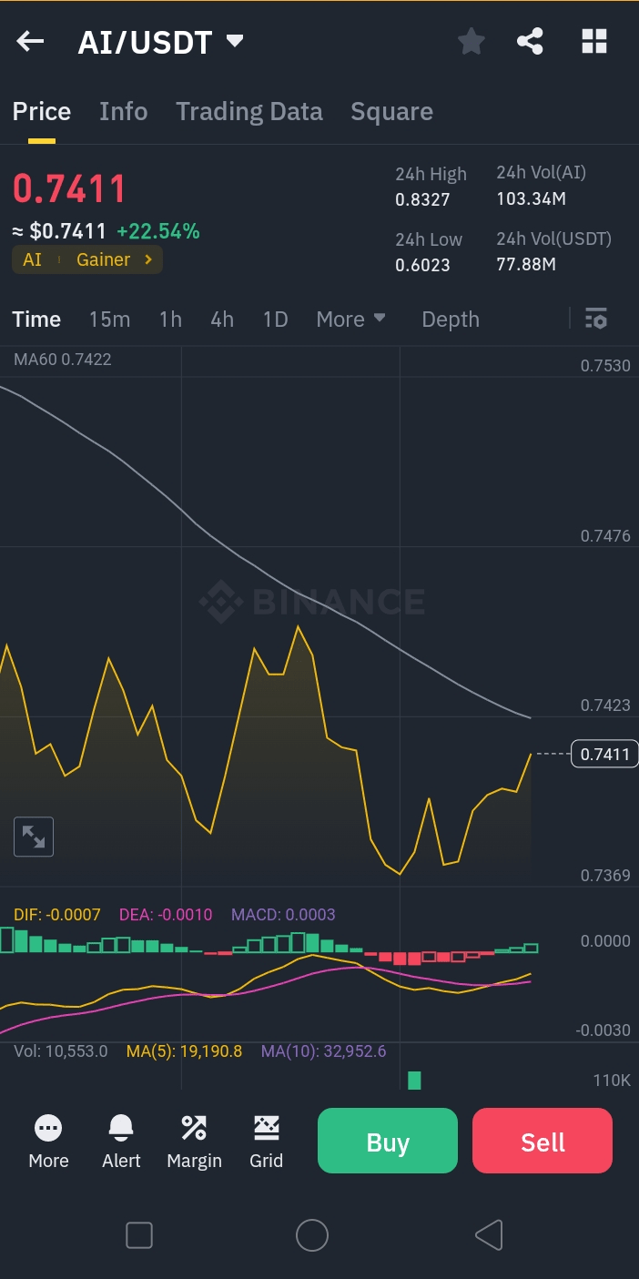 Questo mostra che *AI/USDT* è in una *forte tendenza al rialzo*, con *aumento della pressione d'acquisto* e *interesse di mercato*.