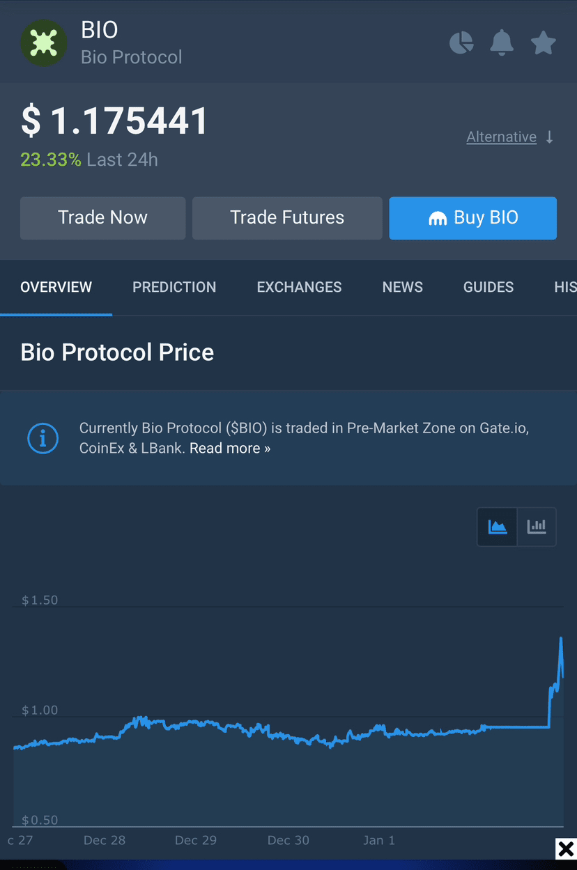 • Già quotato altrove: prima di Binance, $BIO veniva scambiato su exchange più piccoli e meno affidabili, dove le prime attività di trading hanno fatto aumentare significativamente il prezzo.