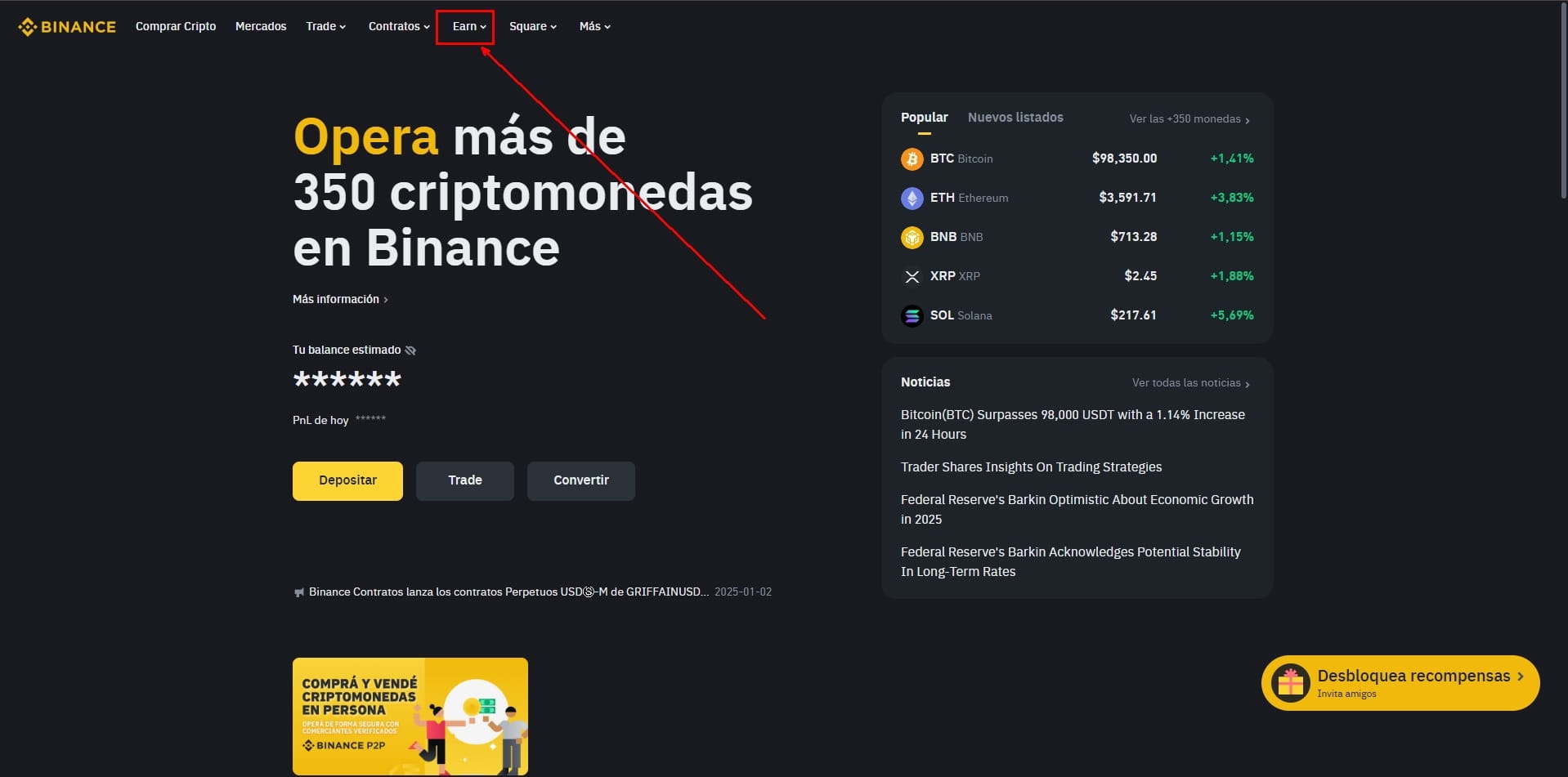 🔥1°, andiamo a Guadagna dalla pagina principale.
