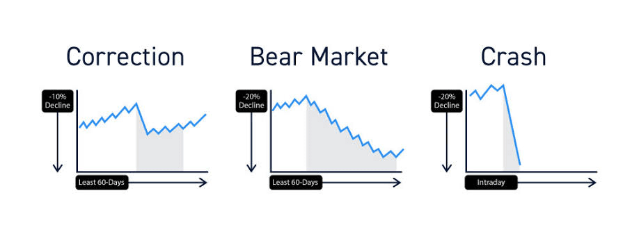 Cominciamo a distinguere tra *Bear Market*, *Correction* e *Market Crash*. NON sono la stessa cosa, ed è molto importante capire la differenza per non farsi travolgere dal panico! 🚨💡
