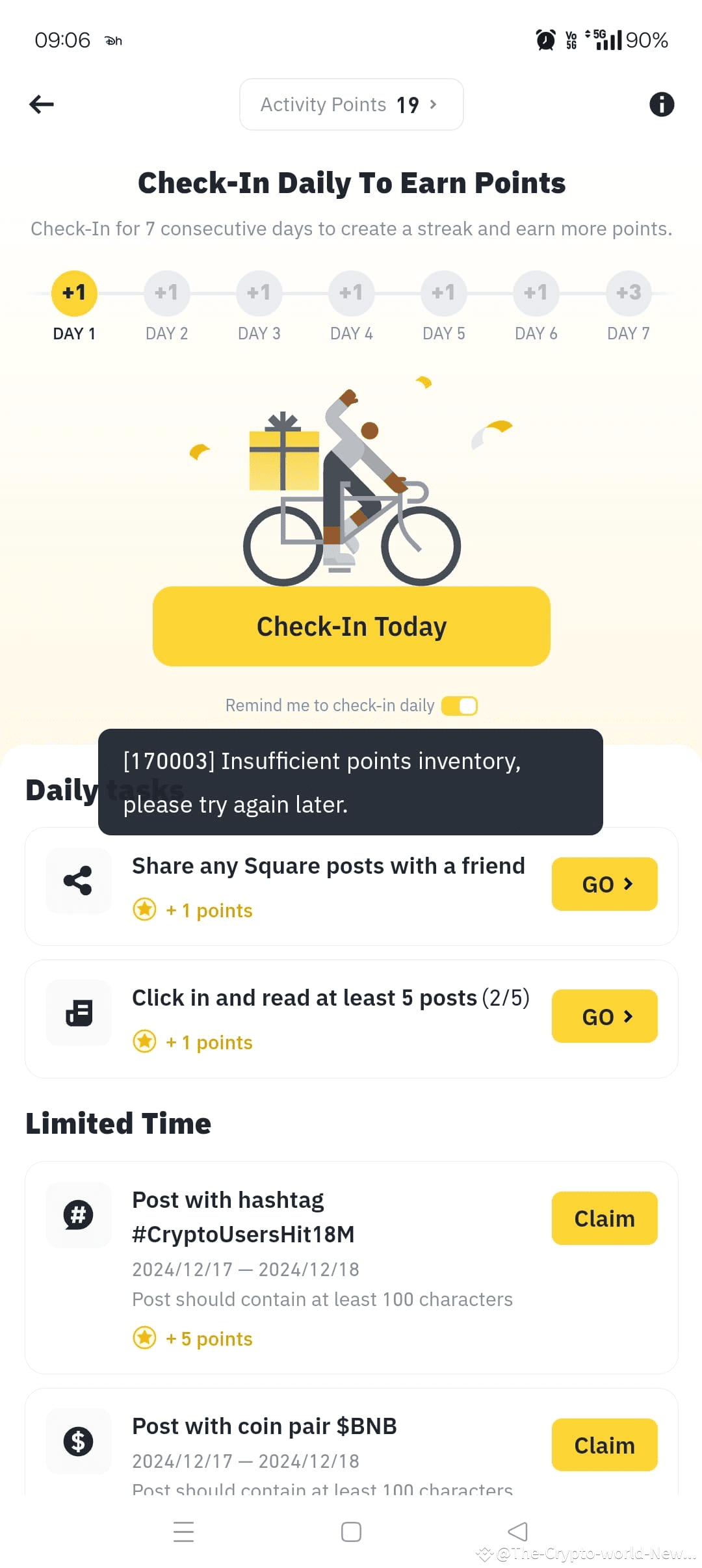 Problemi tecnici o utilizzo di versioni obsolete dell'app di Binance possono impedirti di reclamare i tuoi punti.