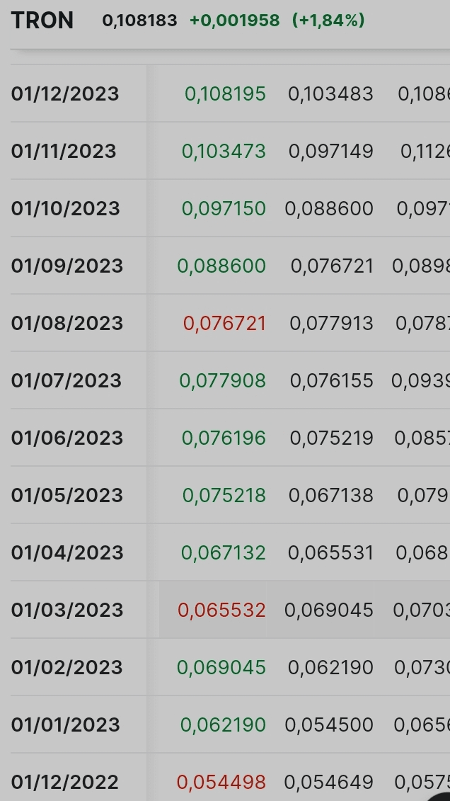 Dai dati storici, TRON ha sempre registrato un buon andamento con un incremento ogni mese. Il movimento del token TRON (TRX) non è troppo aggressivo e aumenta sempre lentamente. È molto adatto anche per conservare i nostri soldi quotidiani e mensili.