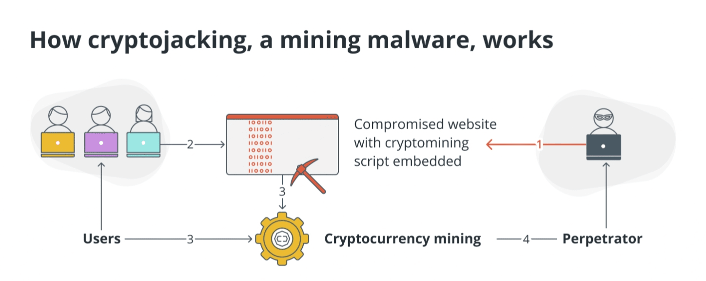 Il cryptojacking è una forma comune di malware di mining che utilizza segretamente la potenza di calcolo di una vittima per minare criptovaluta. Gli attaccanti spesso iniettano codice dannoso in siti web o applicazioni, dove opera in background e consuma le risorse della vittima senza la loro conoscenza o consenso. A seguito di questo uso non autorizzato, la vittima può subire potenziali perdite finanziarie, costi energetici più elevati e prestazioni del dispositivo ridotte.