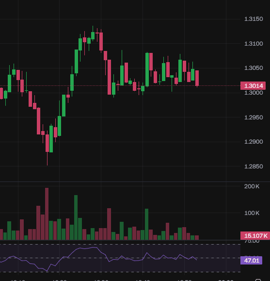 In fondo c'è un RSI tracciato sul grafico. Sembra muoversi verso il basso, il che è in linea con la tendenza generale al ribasso.