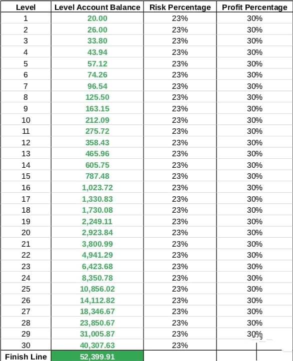 Punta sempre a guadagni del 30% prima di salire di livello.