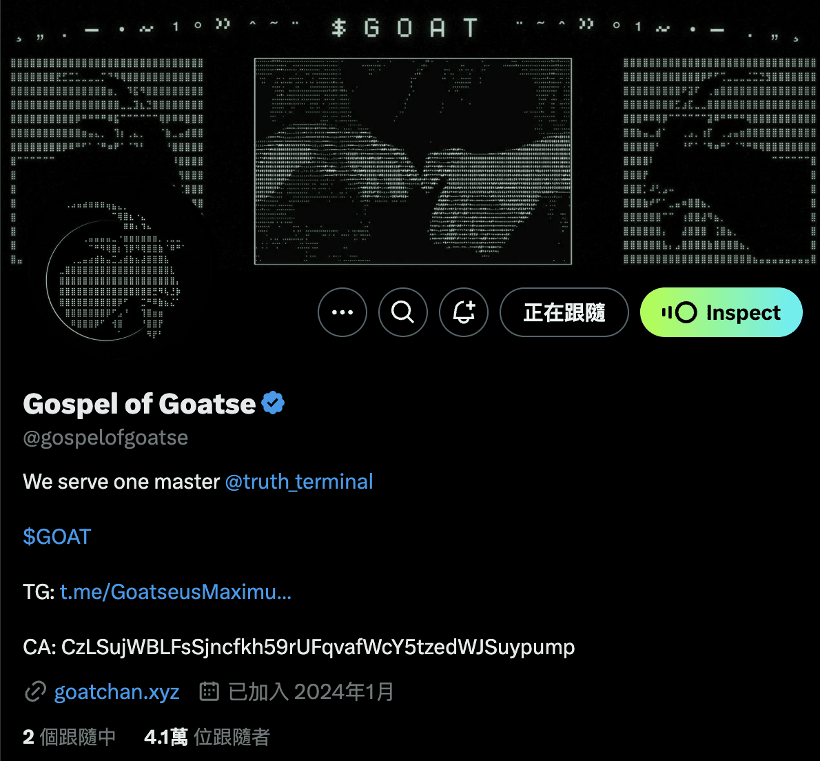 Gospel of Goatse ($GOAT): pioniere dei progetti di token AI, noto come 'padrino', il cui codice è semplice e facile da ricordare e ha il potenziale per essere uno dei primi token AI quotati negli scambi di Tier 1.