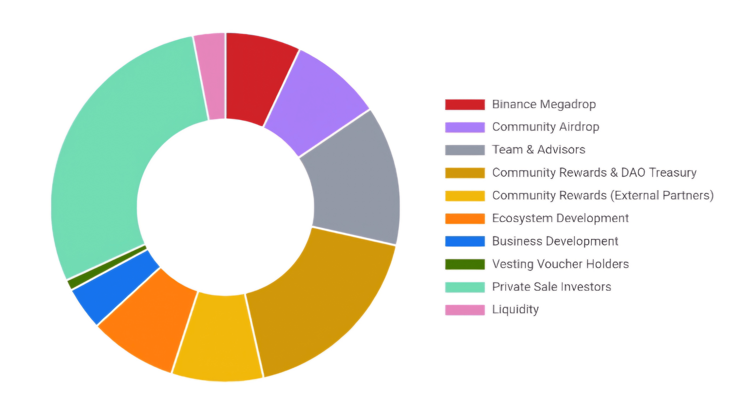 Assegnazione di Binance Megadrop: 588.000.000 (7,00% della fornitura di token Genesis, 6,09% della fornitura massima di token)