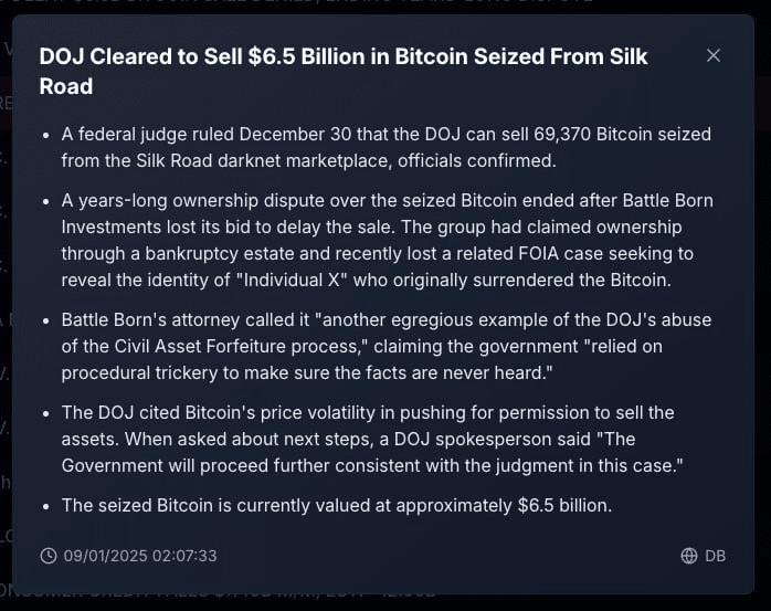 Il 30 dicembre, un giudice federale ha dato il permesso al Dipartimento di Giustizia degli Stati Uniti (DOJ) di vendere 69.370 Bitcoin sequestrati da Silk Road, un mercato illegale sulla darknet. Questa decisione segna la fine di una lunga disputa riguardante la proprietà dei Bitcoin.