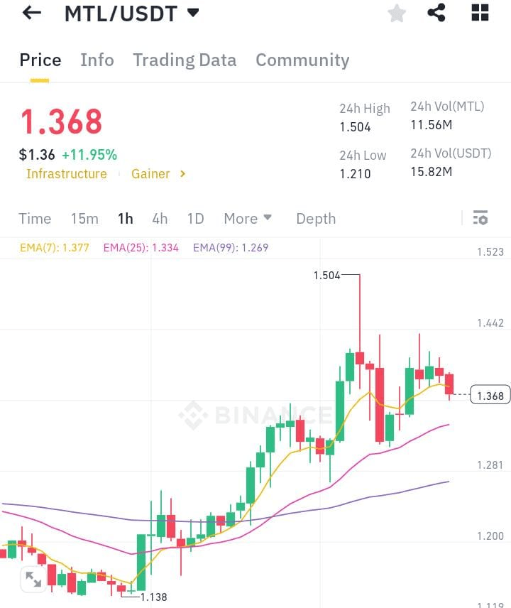 MTL è in una solida tendenza al rialzo, e mi aspetto una spinta verso $1.500 nel breve termine. Personalmente, considererei di entrare su ritracciamenti vicino a $1.360 o $1.300 per un migliore rapporto rischio-rendimento. Volume e azione di prezzo saranno indicatori chiave!