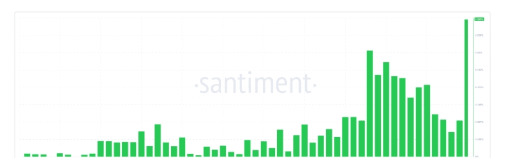 La dominanza sociale misura il livello di discussioni attorno a un token rispetto ad altri asset sul mercato. Quando aumenta, indica un aumento della quota di mercato e una possibile domanda in aumento.