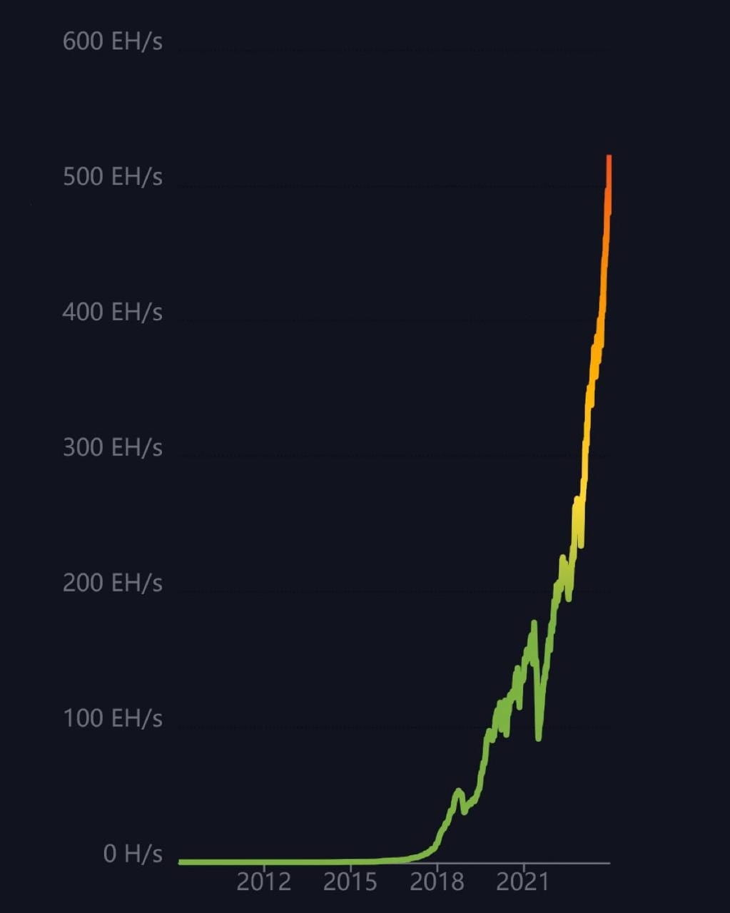 La rete #Bitcoin ha appena raggiunto il massimo storico, raggiungendo l'incredibile cifra di 520 quintilioni di hash al secondo! 💪⛓️ Preparatevi per la prossima era di dominio delle criptovalute!