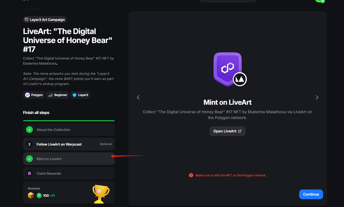 Ci sono anche compiti su L3, coniare un NFT ti darà 1000 punti.