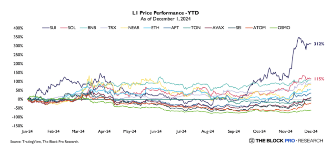 La capacità di esecuzione parallela di Sui è stata riconosciuta dal mercato, con $SUI che diventa il token Layer1 con le migliori performance, con un aumento annuo di circa il 316%.