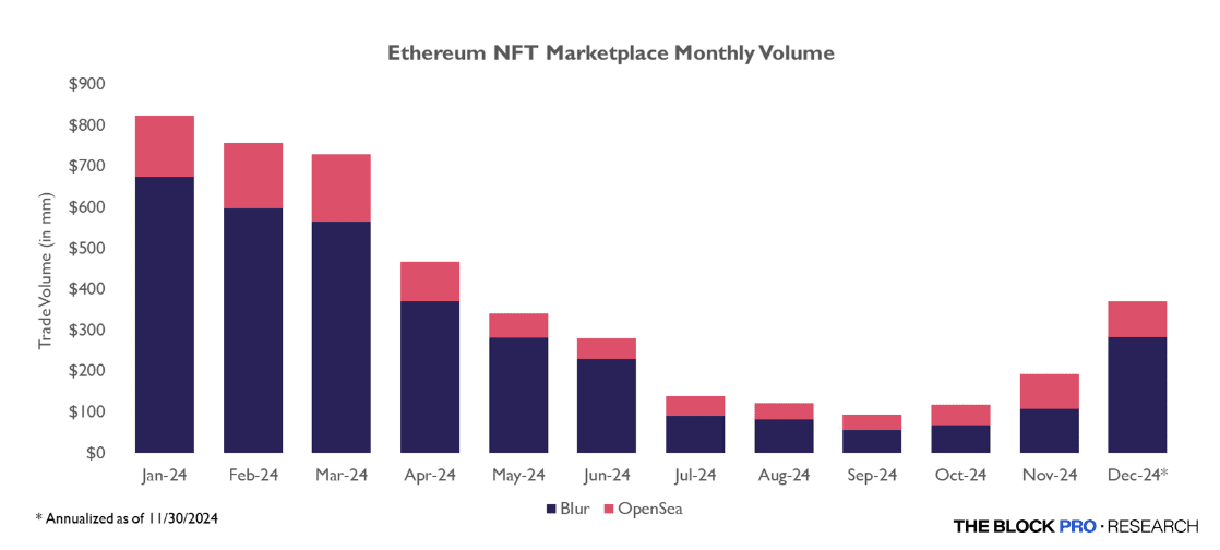 Il volume delle transazioni NFT tradizionali è diminuito drasticamente, con il volume medio settimanale delle transazioni nel mercato NFT di Ethereum che è sceso da circa 82 milioni di dollari all'inizio dell'anno a circa 33 milioni di dollari a giugno, mentre il mercato NFT di Bitcoin è sceso da un volume medio settimanale di quasi 200 milioni di dollari ad aprile a circa 16 milioni di dollari a ottobre.