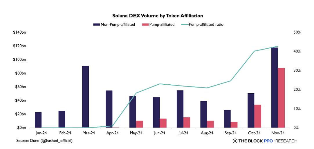 Il trading di memecoin ha spinto l'attività di Solana, con la piattaforma Pump.fun che ha attratto un gran numero di utenti grazie al suo modello di 'lancio equo', diventando la principale piattaforma per il trading di memecoin.