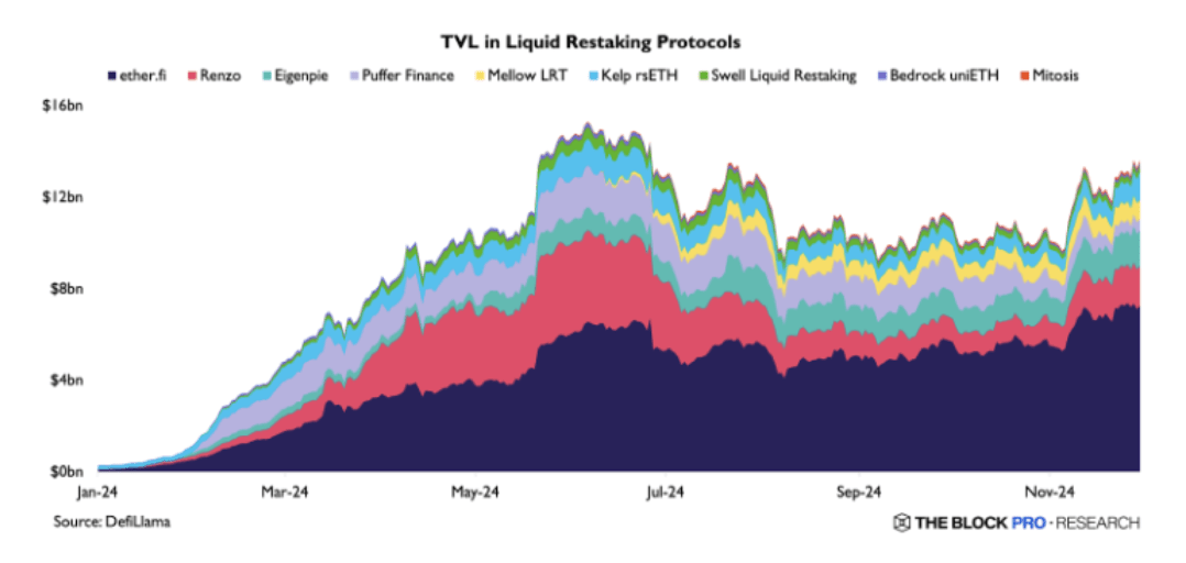 Il Restaking è diventato anche una pista di rottura nell'industria DeFi, con EigenLayer che guida questa tendenza, il suo TVL è passato da 1,3 miliardi di dollari all'inizio dell'anno a un massimo storico di 20 miliardi di dollari a giugno, stabilizzandosi ora attorno ai 16 miliardi di dollari. Ether.fi, come protocollo di Liquid Restaking leader, ha raggiunto un TVL di 7,3 miliardi di dollari, posizionandosi al quarto posto tra le applicazioni DeFi, indicando una forte domanda di rendimento e leva.