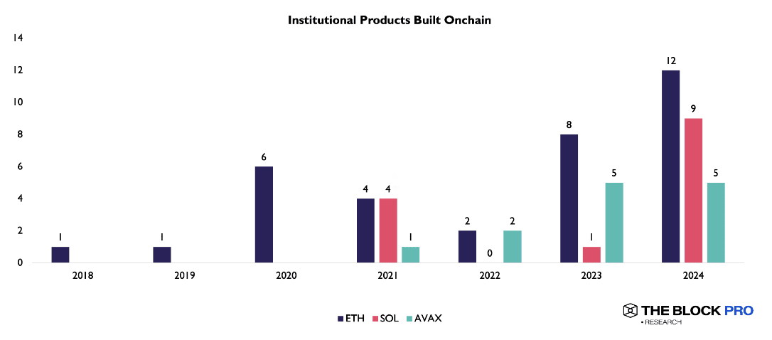 Oltre agli ETF, le istituzioni stanno anche esplorando altri prodotti e servizi legati alle criptovalute, come stablecoin, servizi di staking e RWA tokenizzati. Le diverse piattaforme blockchain hanno ciascuna i propri punti di forza nell'attrarre il TradFi, con Ethereum che continua a essere la piattaforma preferita per i prodotti finanziari di livello istituzionale, Avalanche che si adatta ad applicazioni aziendali e governative, mentre Solana attira prodotti di trading e investimento ad alte prestazioni.