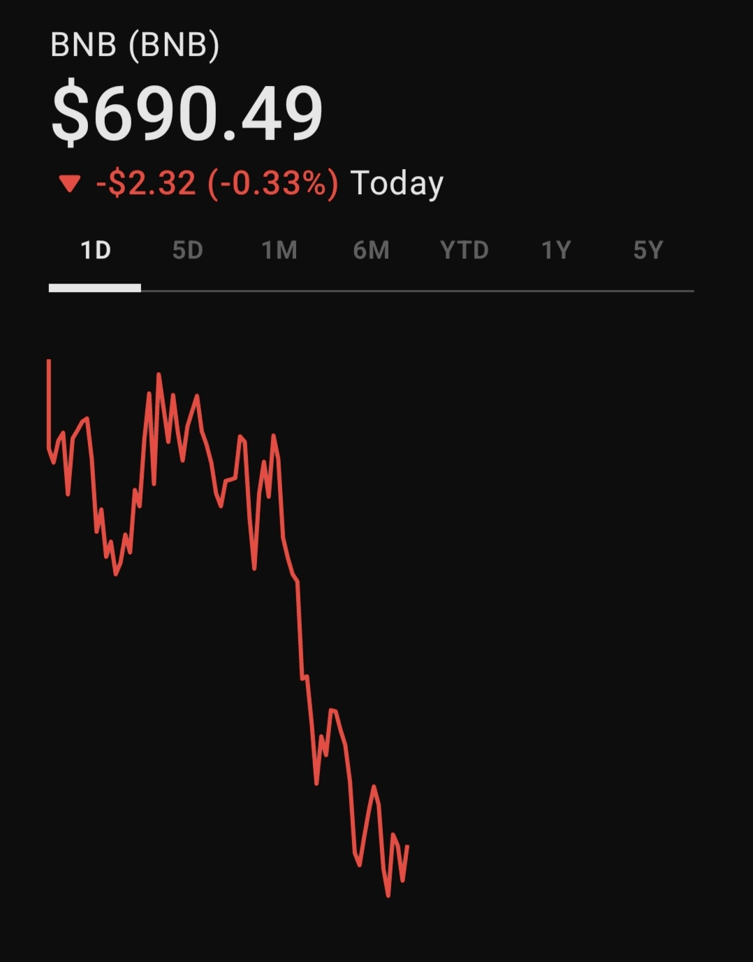 A partire dal 15 gennaio 2025, Binance Coin (BNB) sta scambiando a circa $690,49, riflettendo una leggera diminuzione di circa 0,34% rispetto alla chiusura precedente. Nell'ultima settimana, BNB ha registrato un calo di circa il 4,65%, e nell'ultimo mese è diminuito di circa il 2,83%. Tuttavia, su base annua, BNB ha mostrato una crescita significativa, aumentando di circa il 120,11%.