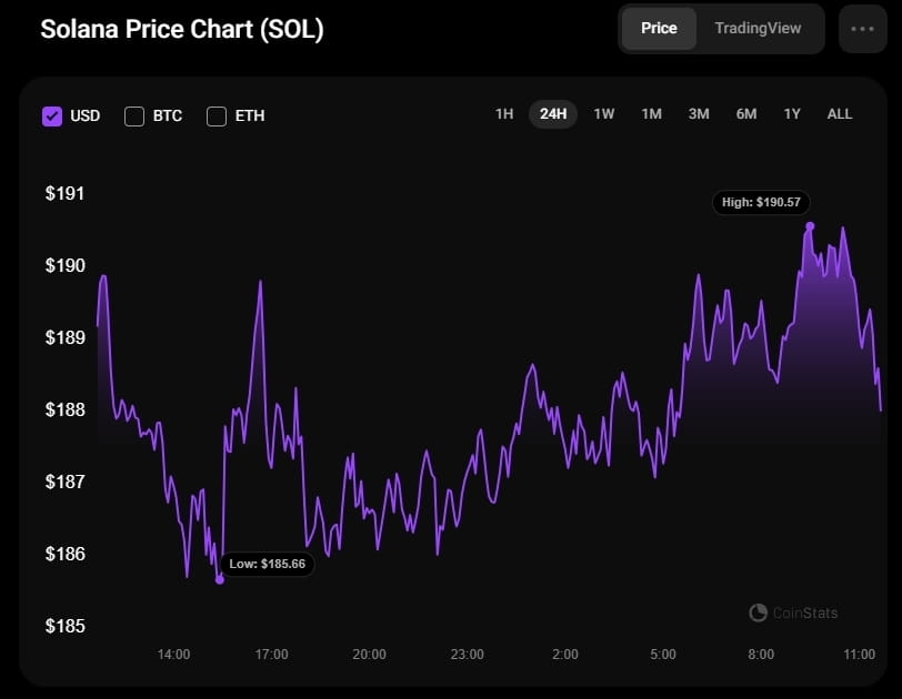 Al momento della stampa, SOL viene scambiato a 186,66 dollari.
